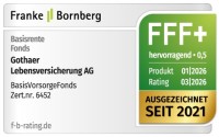 Die Ratingagentur „Franke und Bornberg“ hat die BasisVorsorge Fonds der Schicht 1 der Gothaer Lebensversicherung AG unter die Lupe genommen. Das Produkt schneidet mit der Note 0,5 (FFF+) dabei hervorragend ab.